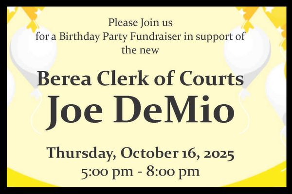My name is Joe DeMio, I am honored to have been elected Berea Clerk of Court that serves the communities of Berea, Brook Park, Metroparks, Middleburg Heights, Olmsted Falls, Olmsted Township, and Strongsville. It is my mission to put my over 25 years of court experience and almost 25 years of city council experience to work for you.